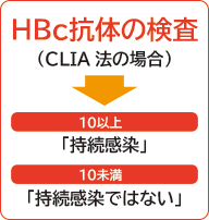 HBc抗体が陽性の場合,高力価陽性が持続感染,低力価陽性が一過性感染を示すものとされています。